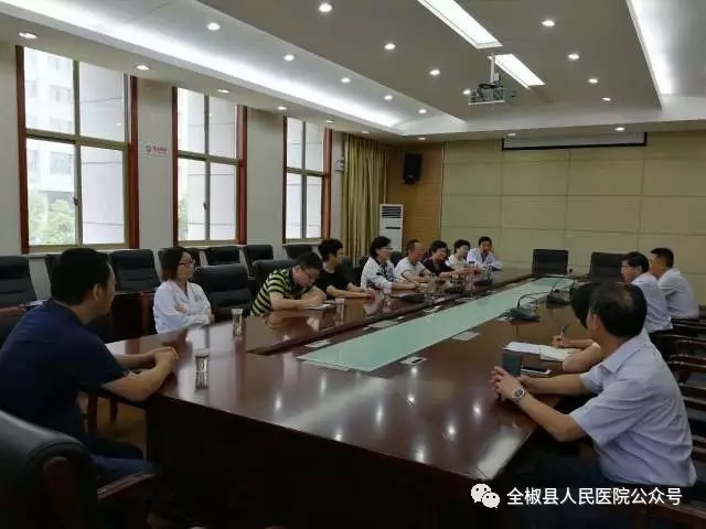 2017年9月19日上午,滁州市第一人民医院院长刘家珍、副院长赵云猛携一批专家团队莅临全椒县人民医院调研医联体工作。在全椒县人民医院行政楼二楼会议室,李飞院长、廖勇书记等领导陪同滁州一院专家们开展调研工作。