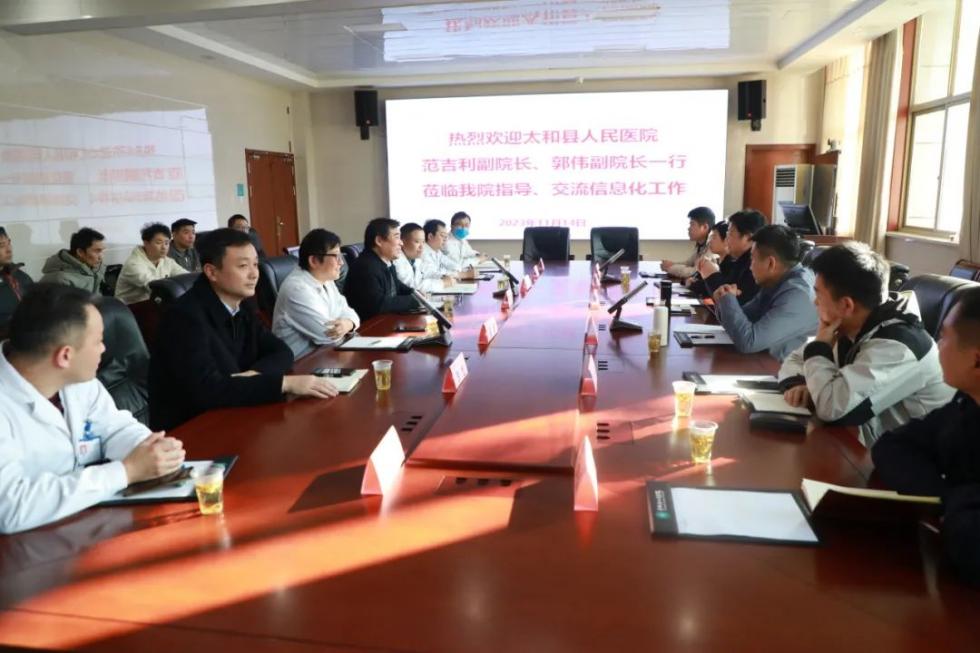 11月14日下午,太和县人民医院副院长范吉利一行到我院交流学习信息化建设工作,我院党委书记、院长周宜中携部分领导班子及相关职能科室负责人陪同交流。