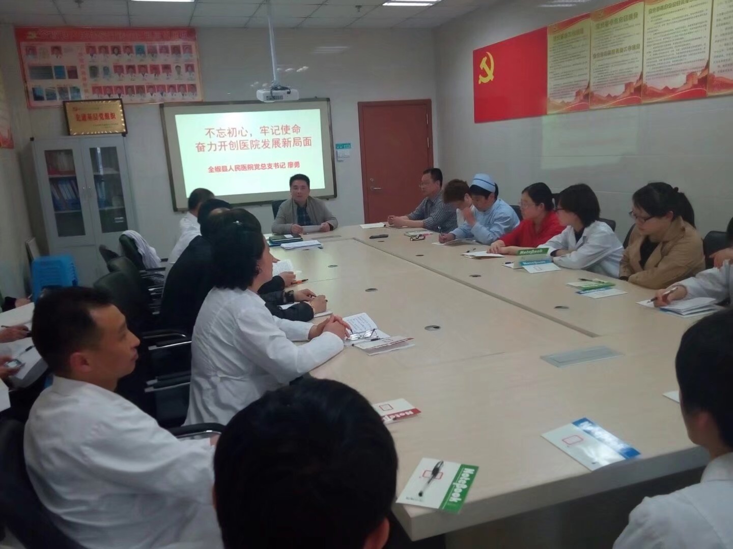 为进一步提升党员政治素质,发挥基层党组织的战斗堡垒作用,贯彻落实党的十九大精神及传达省市领导重要讲话精神,我院党总支书记廖勇同志,于2018年3月30日下午,在门诊支部党员活动室,给门诊党支部全体党员讲了一次"不忘初心,牢记使命 奋力开创医院发展新局面"党课,会议由门诊支部书记肖正文同志主持。
