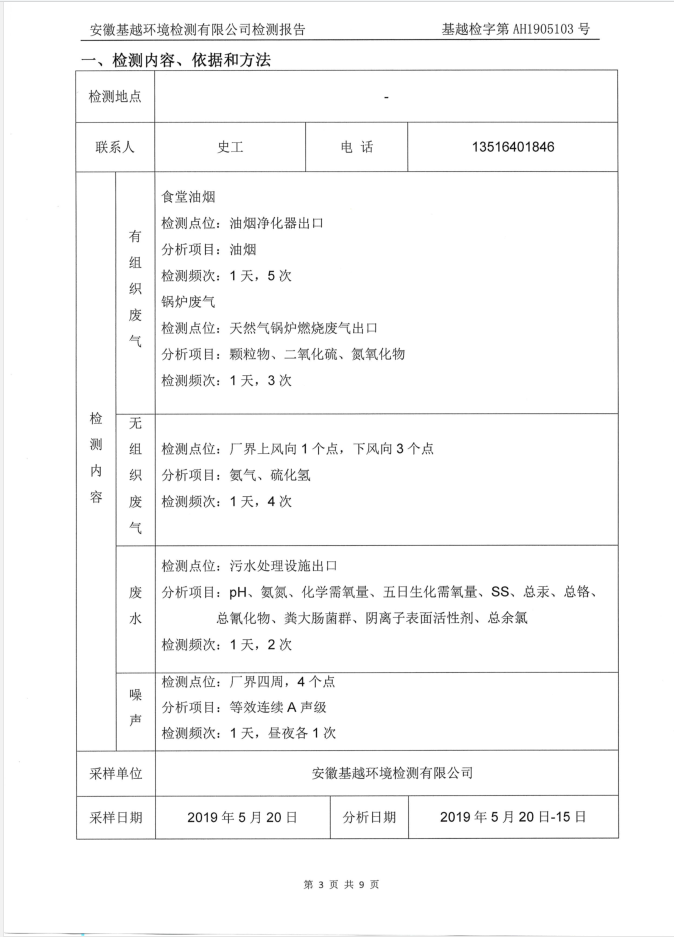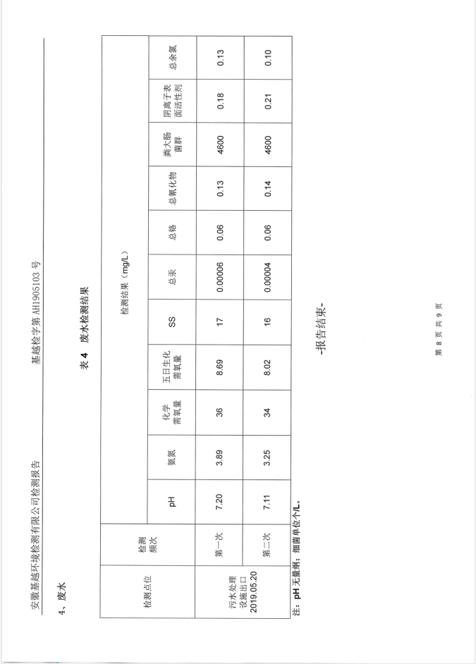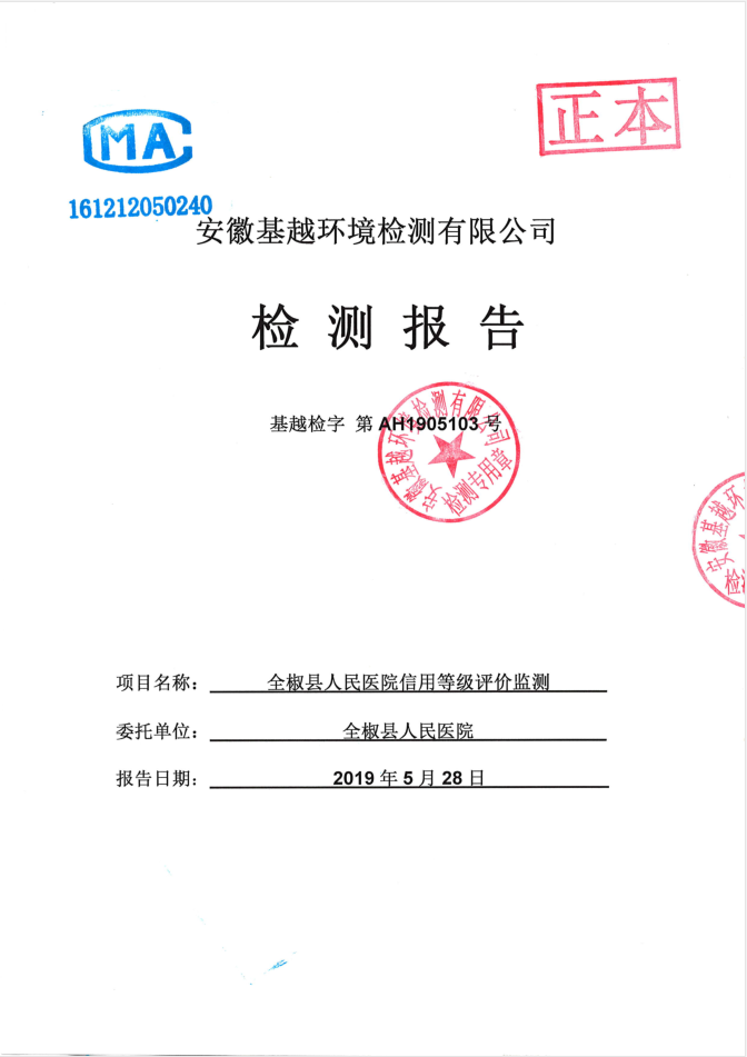 2019年5月全椒县人民医院废气废水自行检测报告