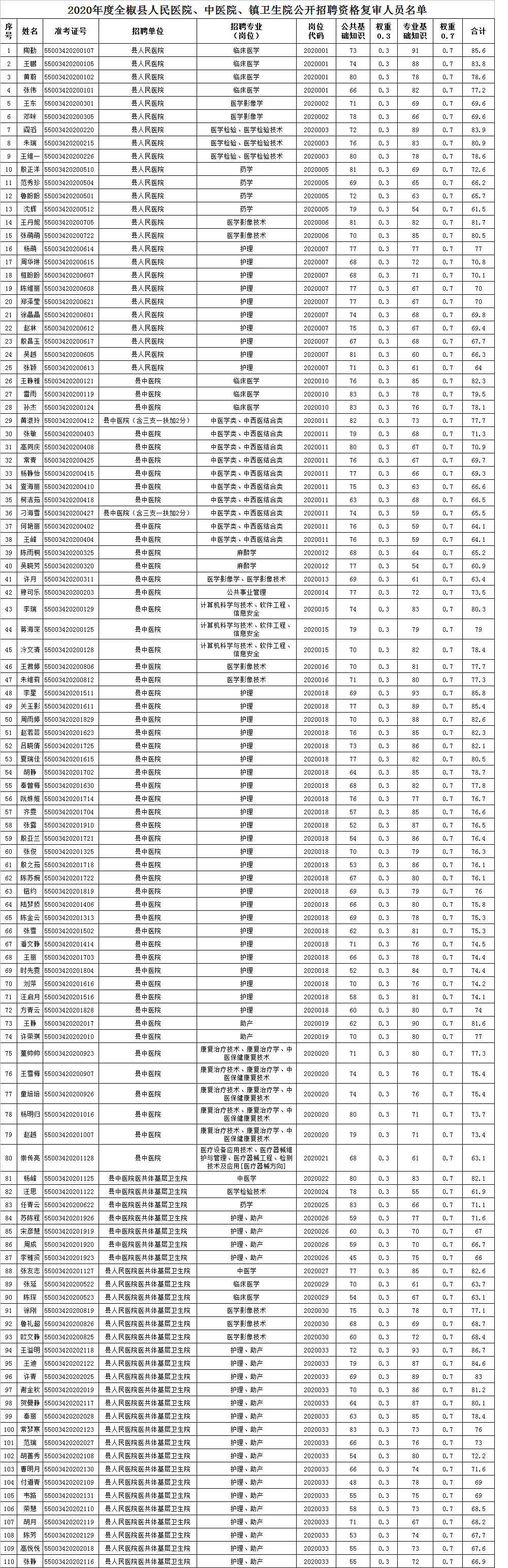附件:2020年度全椒县人民医院、中医院、镇卫生院公开招聘资格复审人员名单(见下图)